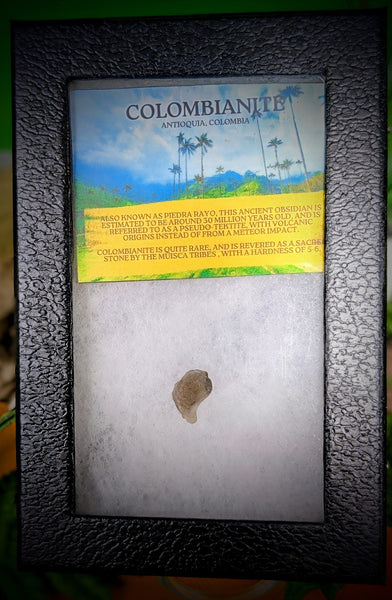Also known as Piedra Rayo, this Ancient Obsidian is estimated to be around 30 million years old and is referred to as pseudo tektite, with volcanic origins. Colombianite is quite rare and is revered as a sacred stone by the Muisca Tribes