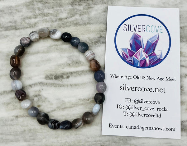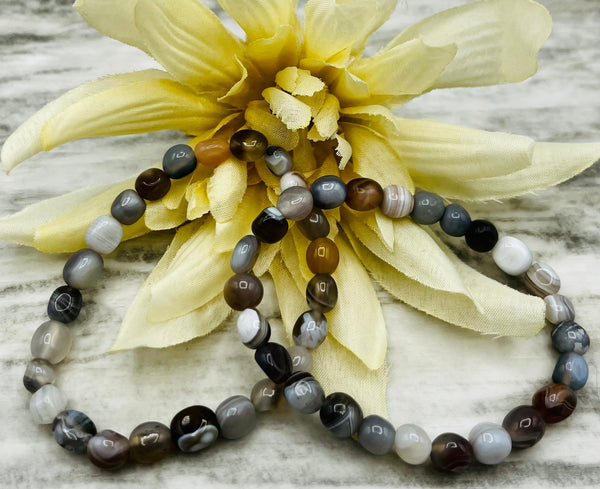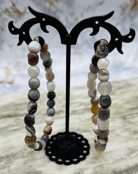 Metaphysical: Botswana Agate is a soothing stone that offers strength and protection, and helps in times of change. The energies of the stone help to reassure that everything is truly working out for our highest good. It balances the Root chakra, while energizing the body and offering a better sense of security.