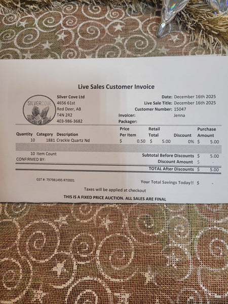 This is your invoice for the date listed above, and we hope you are as excited to get your items as we are! A photo of you invoice and your item(s) are included in this listing for you to review.