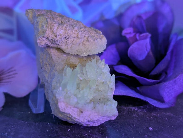 Calcite’s crystalline lattice is home to "activator" elements—like manganese and rare earths that serve as vessels for light. When soaked  in UV lights  these sacred atoms absorb the unseen energy; creating a visible glow that awakens the stone’s inner radiance.