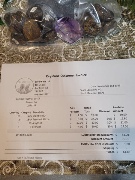 The total is already discounted with any sales you received, and you invoice is ready for check out. All you need to do is add it to your cart, along with any other items you would like to purchase and we will get your treasures on the way!
