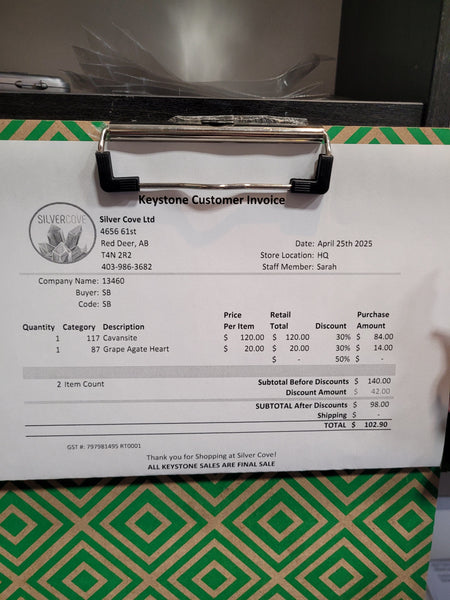 The total is already discounted with any sales you received, and you invoice is ready for check out. All you need to do is add it to your cart, along with any other items you would like to purchase and we will get your treasures on the way!