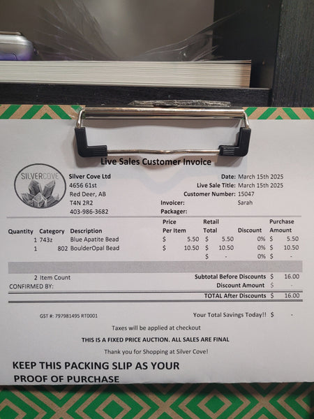 The total is already discounted with any sales you received, and you invoice is ready for check out. All you need to do is add it to your cart, along with any other items you would like to purchase and we will get your treasures on the way!