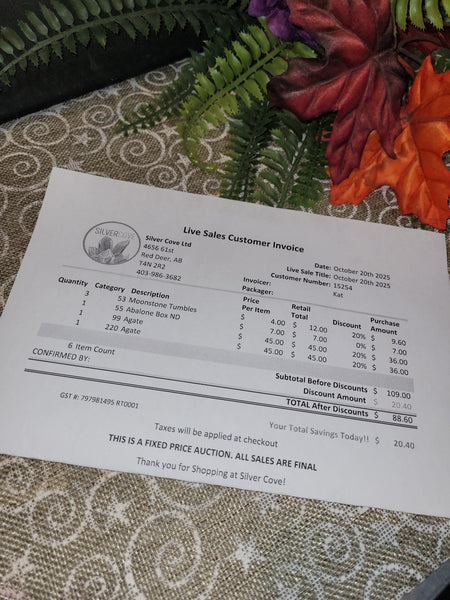 The total is already discounted with any sales you received, and you invoice is ready for check out. All you need to do is add it to your cart, along with any other items you would like to purchase and we will get your treasures on the way!