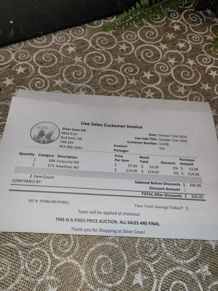 This is your invoice for the date listed above, and we hope you are as excited to get your items as we are! A photo of you invoice and your item(s) are included in this listing for you to review.