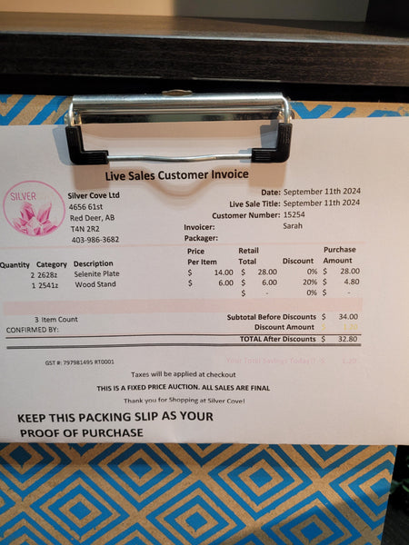 The total is already discounted with any sales you received, and you invoice is ready for check out. All you need to do is add it to your cart, along with any other items you would like to purchase and we will get your treasures on the way!