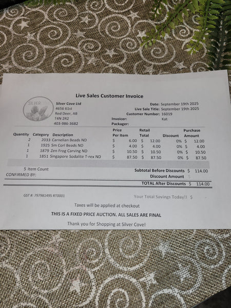 The total is already discounted with any sales you received, and you invoice is ready for check out. All you need to do is add it to your cart, along with any other items you would like to purchase and we will get your treasures on the way!