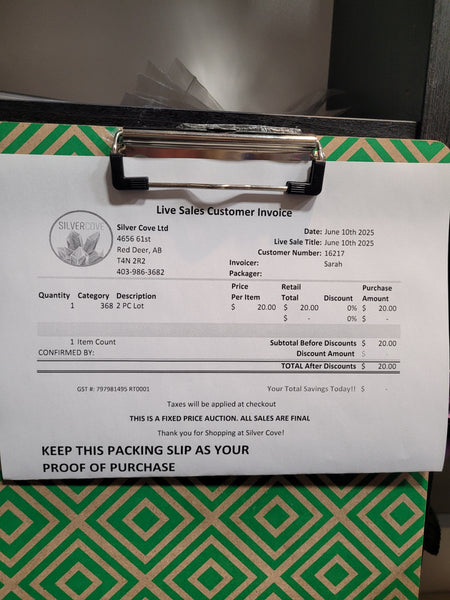 This is your invoice for the date listed above, and we hope you are as excited to get your items as we are! A photo of you invoice and your item(s) are included in this listing for you to review.