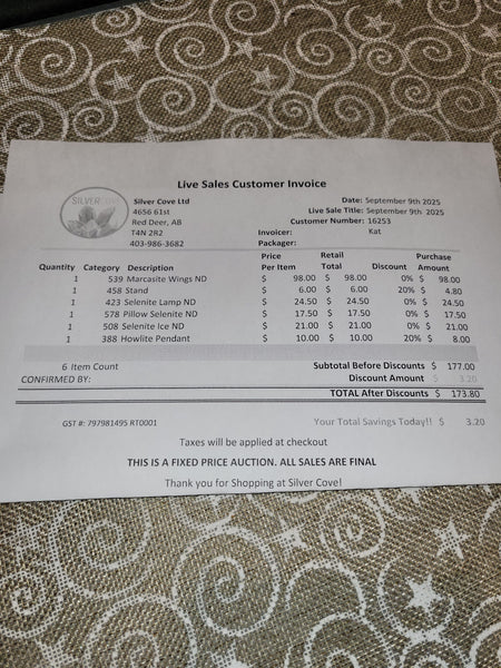 The total is already discounted with any sales you received, and you invoice is ready for check out. All you need to do is add it to your cart, along with any other items you would like to purchase and we will get your treasures on the way!