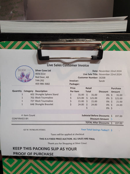 This is your invoice for the date listed above, and we hope you are as excited to get your items as we are! A photo of you invoice and your item(s) are included in this listing for you to review.