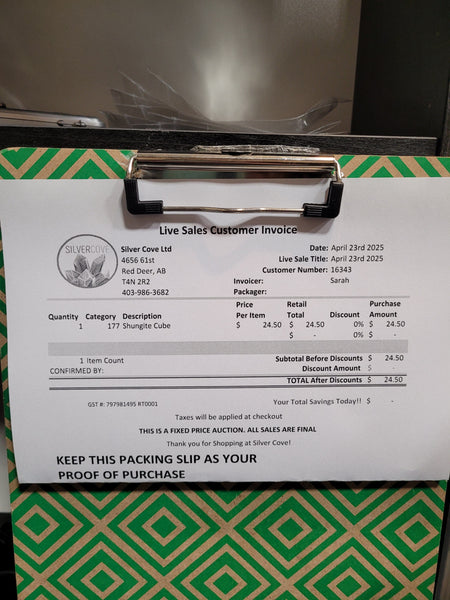 This is your invoice for the date listed above, and we hope you are as excited to get your items as we are! A photo of you invoice and your item(s) are included in this listing for you to review.
