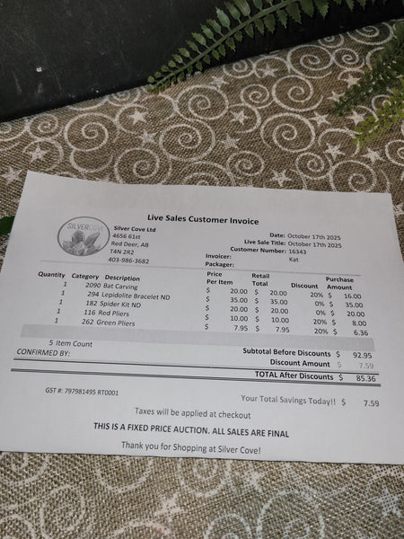 The total is already discounted with any sales you received, and you invoice is ready for check out. All you need to do is add it to your cart, along with any other items you would like to purchase and we will get your treasures on the way!
