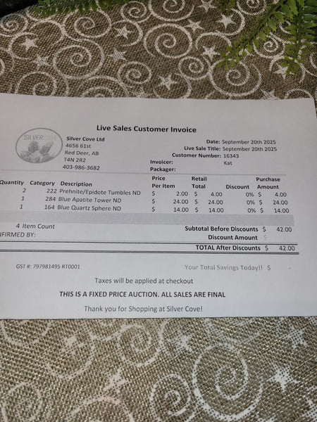 The total is already discounted with any sales you received, and you invoice is ready for check out. All you need to do is add it to your cart, along with any other items you would like to purchase and we will get your treasures on the way!