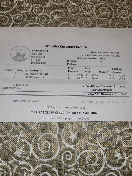 This is your invoice for the date listed above, and we hope you are as excited to get your items as we are! A photo of you invoice and your item(s) are included in this listing for you to review.