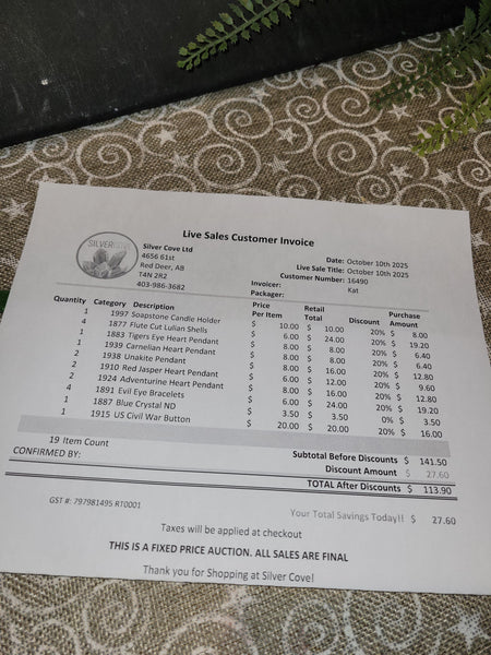 The total is already discounted with any sales you received, and you invoice is ready for check out. All you need to do is add it to your cart, along with any other items you would like to purchase and we will get your treasures on the way!