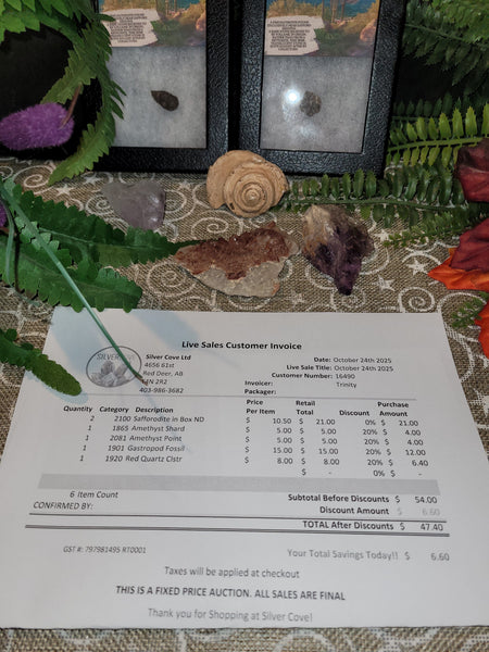The total is already discounted with any sales you received, and you invoice is ready for check out. All you need to do is add it to your cart, along with any other items you would like to purchase and we will get your treasures on the way!