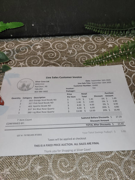 The total is already discounted with any sales you received, and you invoice is ready for check out. All you need to do is add it to your cart, along with any other items you would like to purchase and we will get your treasures on the way!