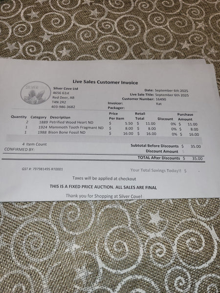 This is your invoice for the date listed above, and we hope you are as excited to get your items as we are! A photo of you invoice and your item(s) are included in this listing for you to review.