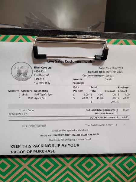 This is your invoice for the date listed above, and we hope you are as excited to get your items as we are! A photo of you invoice and your item(s) are included in this listing for you to review.