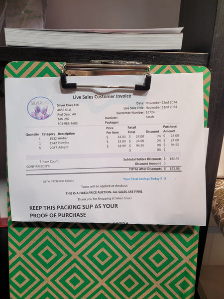 This is your invoice for the date listed above, and we hope you are as excited to get your items as we are! A photo of you invoice and your item(s) are included in this listing for you to review.