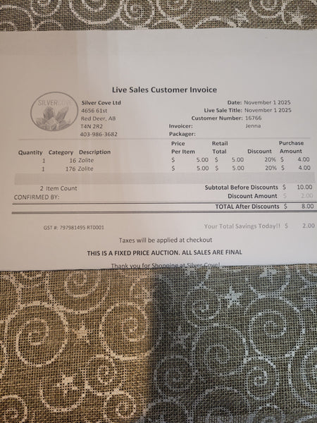 The total is already discounted with any sales you received, and you invoice is ready for check out. All you need to do is add it to your cart, along with any other items you would like to purchase and we will get your treasures on the way!