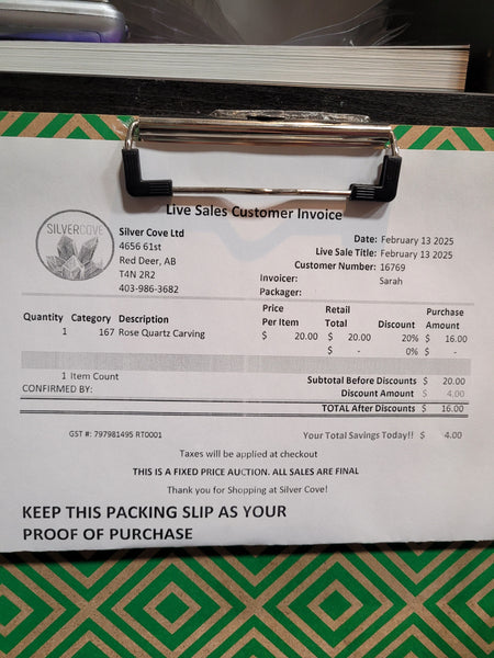This is your invoice for the date listed above, and we hope you are as excited to get your items as we are! A photo of you invoice and your item(s) are included in this listing for you to review.