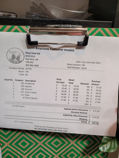 The total is already discounted with any sales you received, and you invoice is ready for check out. All you need to do is add it to your cart, along with any other items you would like to purchase and we will get your treasures on the way!