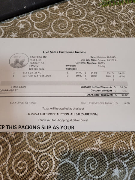 The total is already discounted with any sales you received, and you invoice is ready for check out. All you need to do is add it to your cart, along with any other items you would like to purchase and we will get your treasures on the way!