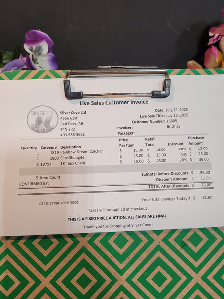 This is your invoice for the date listed above, and we hope you are as excited to get your items as we are! A photo of you invoice and your item(s) are included in this listing for you to review.