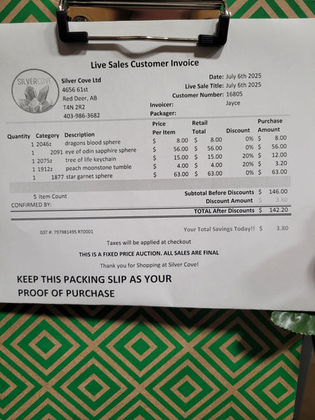 This is your invoice for the date listed above, and we hope you are as excited to get your items as we are! A photo of you invoice and your item(s) are included in this listing for you to review.