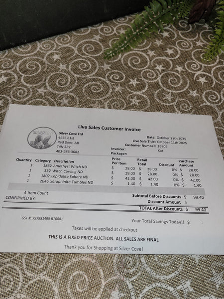 The total is already discounted with any sales you received, and you invoice is ready for check out. All you need to do is add it to your cart, along with any other items you would like to purchase and we will get your treasures on the way!