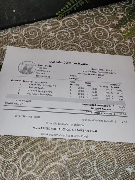 The total is already discounted with any sales you received, and you invoice is ready for check out. All you need to do is add it to your cart, along with any other items you would like to purchase and we will get your treasures on the way!