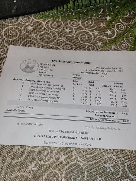 The total is already discounted with any sales you received, and you invoice is ready for check out. All you need to do is add it to your cart, along with any other items you would like to purchase and we will get your treasures on the way!