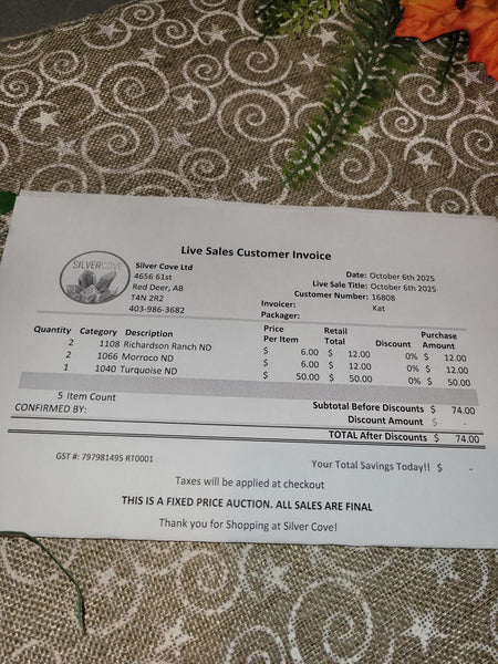 The total is already discounted with any sales you received, and you invoice is ready for check out. All you need to do is add it to your cart, along with any other items you would like to purchase and we will get your treasures on the way!