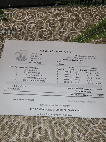 The total is already discounted with any sales you received, and you invoice is ready for check out. All you need to do is add it to your cart, along with any other items you would like to purchase and we will get your treasures on the way!