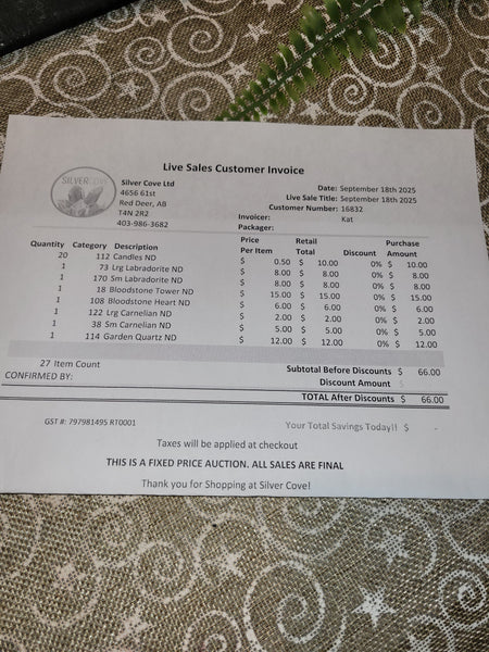 The total is already discounted with any sales you received, and you invoice is ready for check out. All you need to do is add it to your cart, along with any other items you would like to purchase and we will get your treasures on the way!