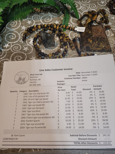 The total is already discounted with any sales you received, and you invoice is ready for check out. All you need to do is add it to your cart, along with any other items you would like to purchase and we will get your treasures on the way!