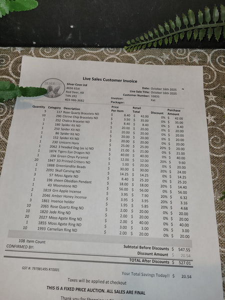 The total is already discounted with any sales you received, and you invoice is ready for check out. All you need to do is add it to your cart, along with any other items you would like to purchase and we will get your treasures on the way!