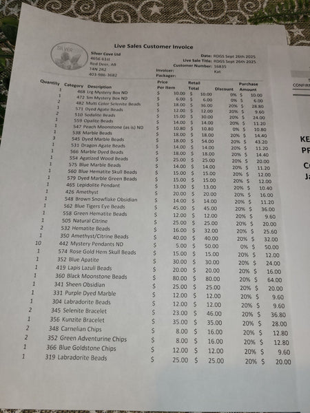 This is your invoice for the date listed above, and we hope you are as excited to get your items as we are! A photo of you invoice and your item(s) are included in this listing for you to review.