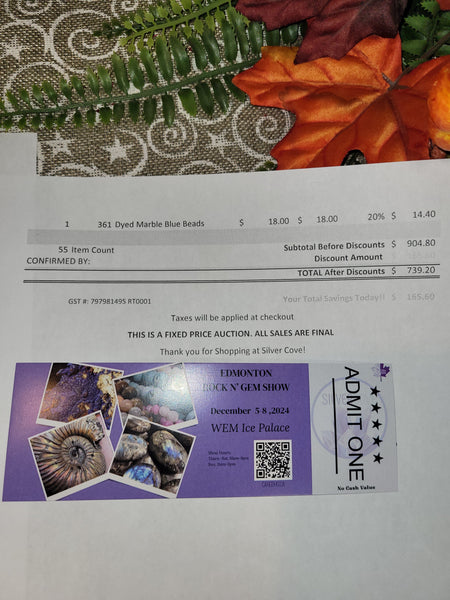 The total is already discounted with any sales you received, and you invoice is ready for check out. All you need to do is add it to your cart, along with any other items you would like to purchase and we will get your treasures on the way!