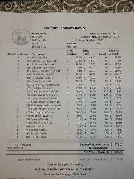The total is already discounted with any sales you received, and you invoice is ready for check out. All you need to do is add it to your cart, along with any other items you would like to purchase and we will get your treasures on the way!