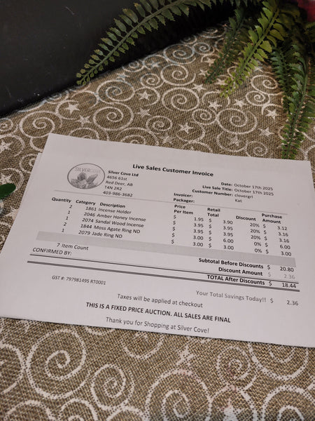 The total is already discounted with any sales you received, and you invoice is ready for check out. All you need to do is add it to your cart, along with any other items you would like to purchase and we will get your treasures on the way!