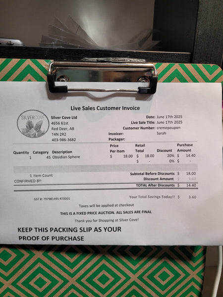 This is your invoice for the date listed above, and we hope you are as excited to get your items as we are! A photo of you invoice and your item(s) are included in this listing for you to review.