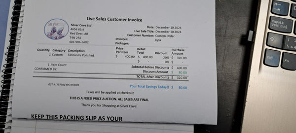 The total is already discounted with any sales you received, and you invoice is ready for check out. All you need to do is add it to your cart, along with any other items you would like to purchase and we will get your treasures on the way!