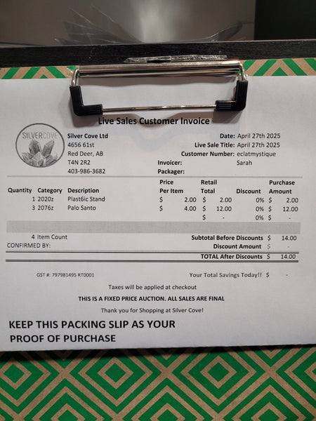 This is your invoice for the date listed above, and we hope you are as excited to get your items as we are! A photo of you invoice and your item(s) are included in this listing for you to review.