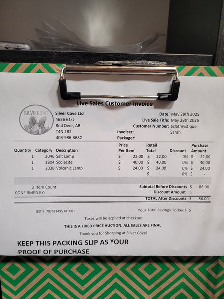 This is your invoice for the date listed above, and we hope you are as excited to get your items as we are! A photo of you invoice and your item(s) are included in this listing for you to review.