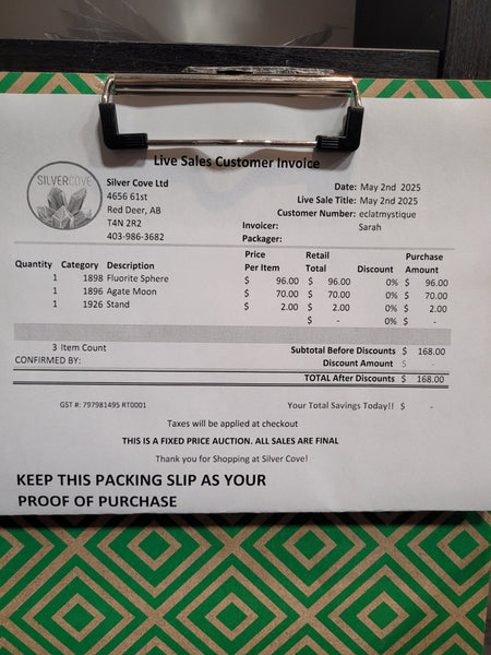 This is your invoice for the date listed above, and we hope you are as excited to get your items as we are! A photo of you invoice and your item(s) are included in this listing for you to review.