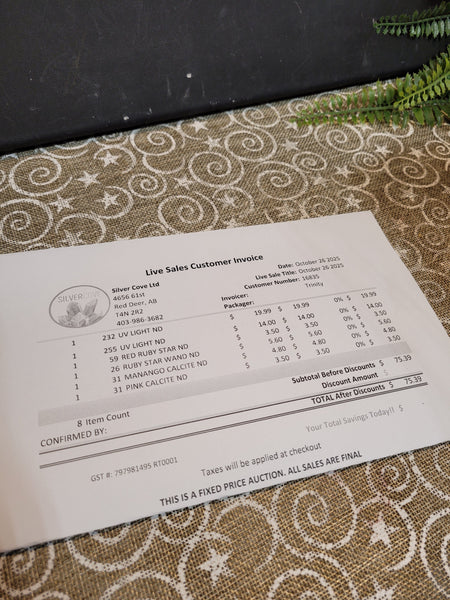 The total is already discounted with any sales you received, and you invoice is ready for check out. All you need to do is add it to your cart, along with any other items you would like to purchase and we will get your treasures on the way!