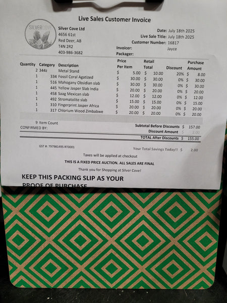 The total is already discounted with any sales you received, and you invoice is ready for check out. All you need to do is add it to your cart, along with any other items you would like to purchase and we will get your treasures on the way!