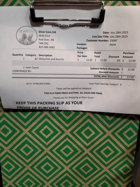 This is your invoice for the date listed above, and we hope you are as excited to get your items as we are! A photo of you invoice and your item(s) are included in this listing for you to review.
